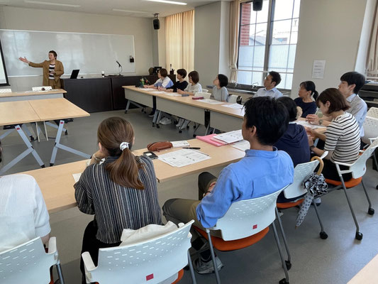 丸山多賀子さん(1994年卒・本学嘱託講師)に「国語の教科書で日本語教育!~多文化多言語の子どもたちのために~」と題してご講演いただいた後、軽食をとりながら懇談しました。